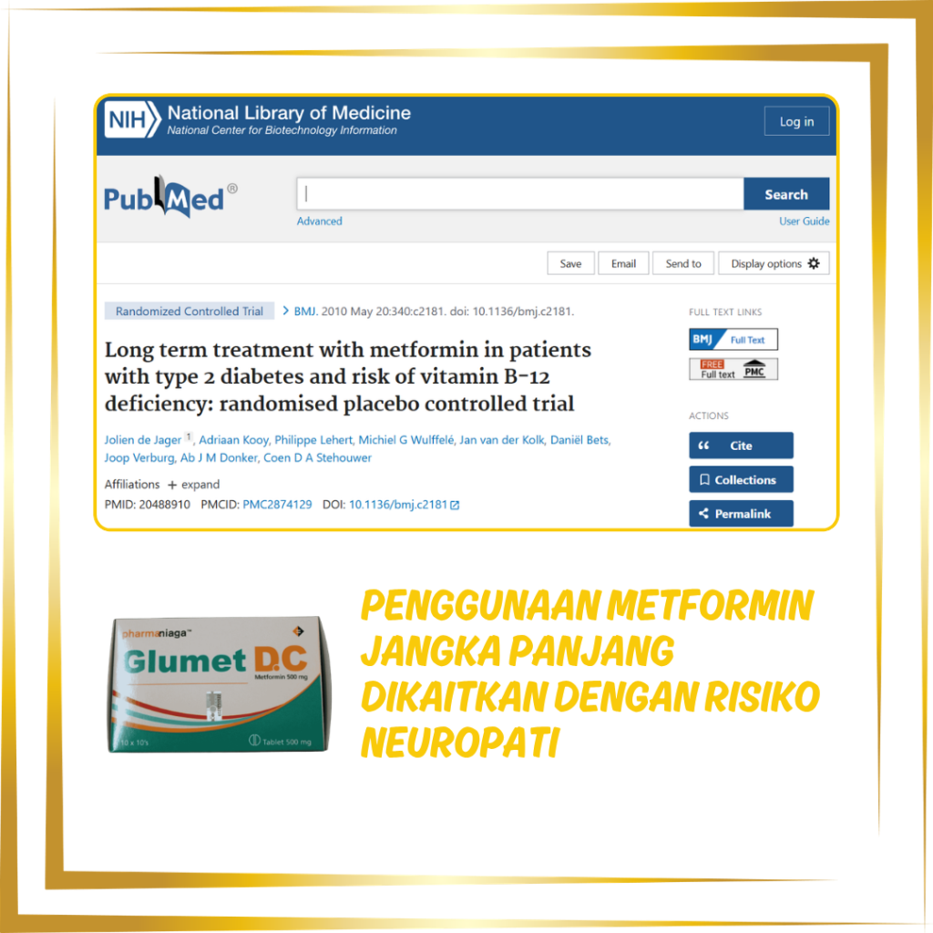 Kajian menunjukkan bahawa pesakit yang mengambil metformin dalam tempoh panjang dan mengalami kekurangan vitamin B12 mempunyai risiko lebih tinggi untuk mengalami neuropati periferi.