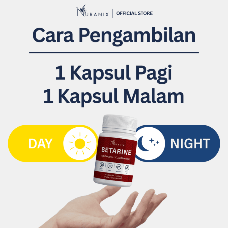 Ambil dua kapsul Betarine setiap hari, sebiji pagi dan sebiji malam.